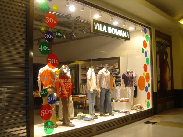 A adesivação de vitrines pode ser usada tanto pelo comércio de shopping, galerias como de rua. O intuito é fazer combinações que respeitem a ação promocional, sejam eles de descontos, novos produtos, datas comemorativas ou apenas decoração.