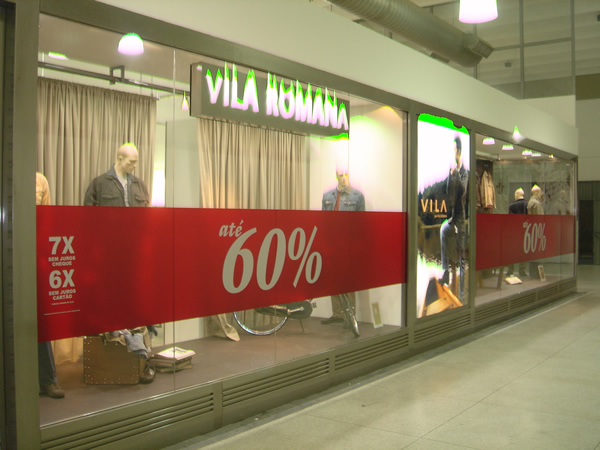 Os lojistas investem na adesivação de vitrines, pois a ferramenta de divulgação é extremamente eficiente para chamar a atenção do público-alvo que circula pelo local.