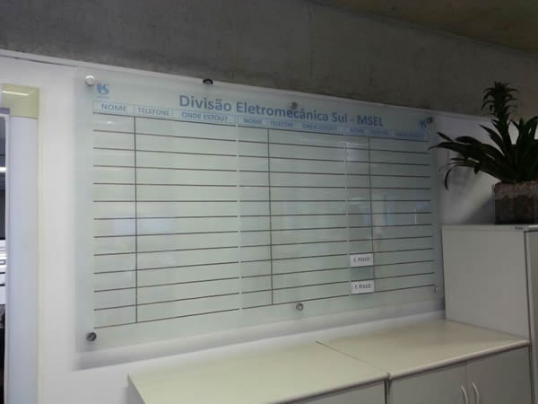 O painel de vidro tem o objetivo de identificar a empresa ou salas, por isso, muitos usam em recepções e corredores. Fabricadas em vidros temperados e com letreiros variados que podem ser em alto-relevo, a linha de painel de vidro valoriza o nome da empresa traduzindo um novo conceito em identificação.